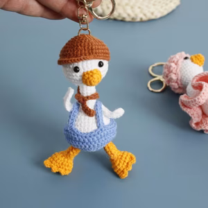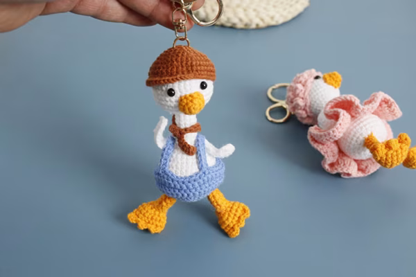 Handmade Crochet Couple Duck Doll Wool Knitted Ballet Pendant Key Chain Pendant